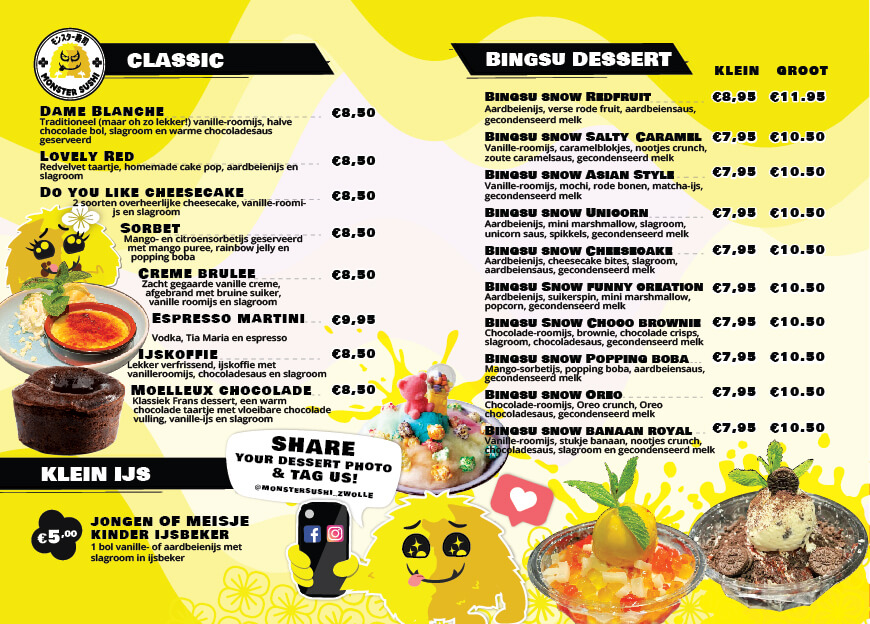 Monster sushi & grill serveert overheerlijke verse sushi met Japanse en Koreaanse side dishes. Ook is er een uitgebreid assortiment aan vlees en vis, die u zelf klaar maakt op onze ingebouwde tafelbarbecues. BBQ-en zonder barbecuegeur maakt Monster sushi & grill uniek in Zwolle.